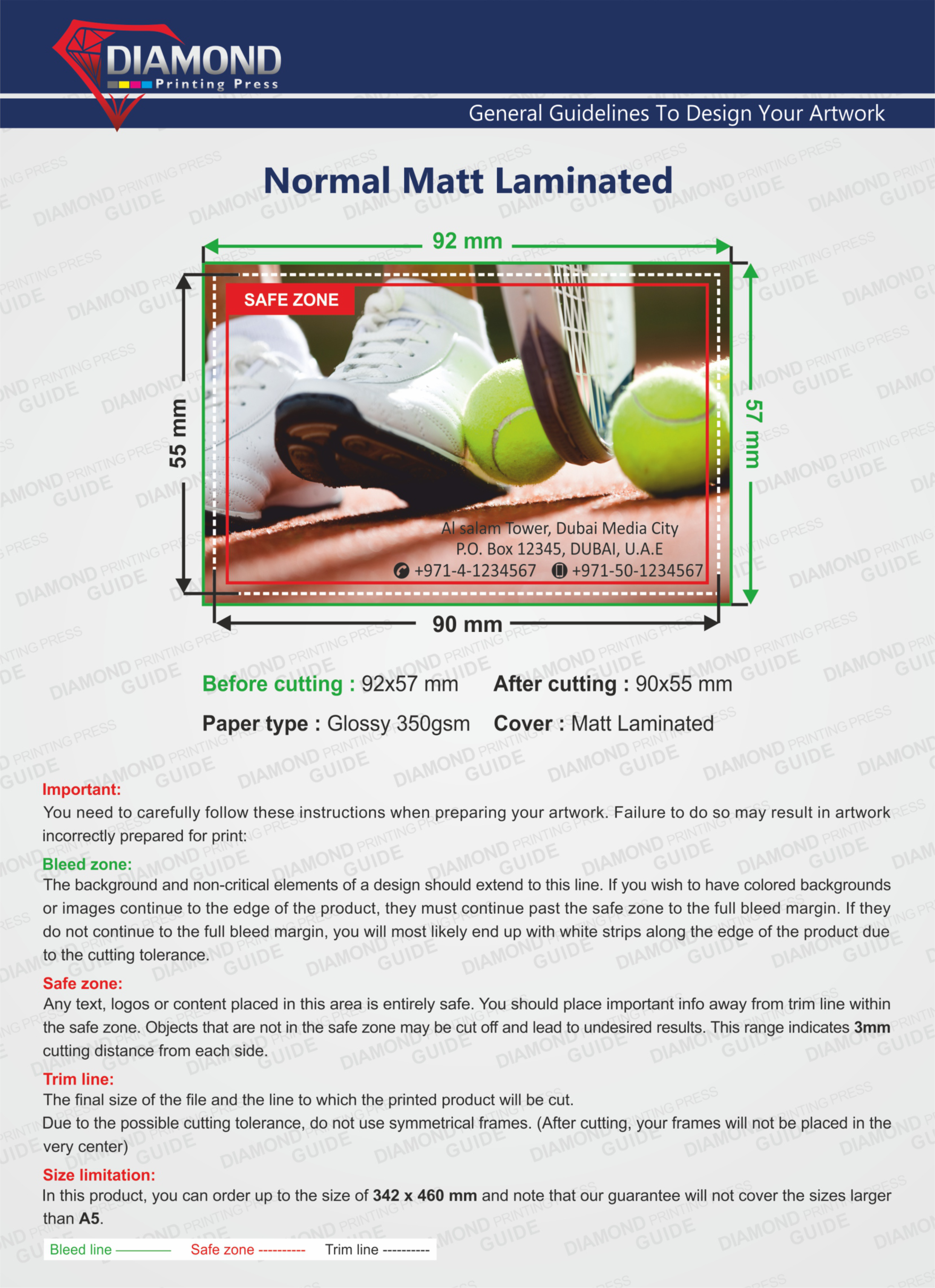 is one of the largest online printing companies in Dubai and gives printing services across the United Arab Emirates (UAE) (Dubai, Abu Dhabi, Sharjah, Ajman, Ras Al Khaimah, Fujairah, Umm al-Quwain, And Print shop near me). We offer wide range of offset printing products, including business cards (matte and glossy laminated, round corners, velvet, UV), flyers, letterheads, labels, posters, brochures, invoices, office sets, commercial printing services, and packaging products, along with post print services such as folding, cutting, punching, embossing, and so on. all with high quality and competitive prices. Additionally, we provide you with the option to print your own customized and exclusive designs. Diamond Press, with its user-friendly and secure ordering system, allows you to place your orders at any time and from anywhere, ensuring the shortest possible turnaround time.